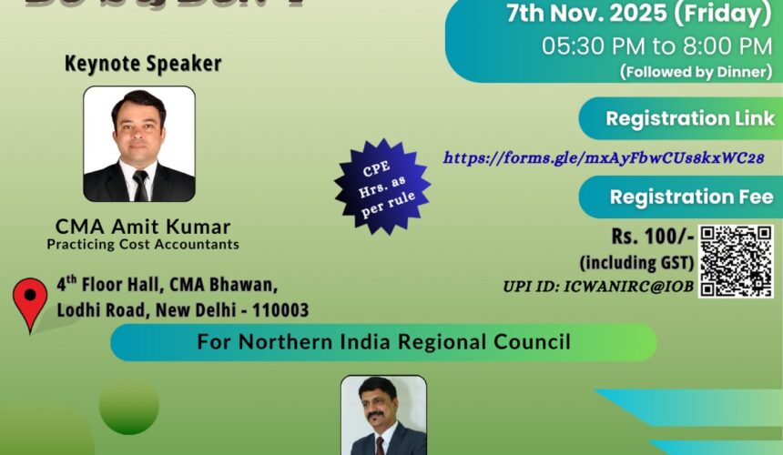 • Venue : 4th Floor Hall, CMB Bhavan Lodhi Road, New Delhi - 110053